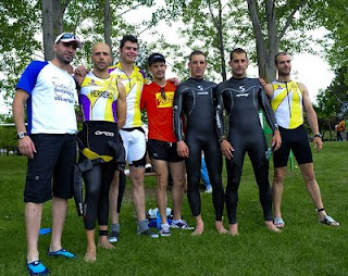 El resto dando la talla y dejando el pabellón muy alto. Oskillar, pura calidad, siempre en los puestos de delante da igual la prueba que sea. Dani “Moon” un exquisito de la materia, cuida el más mínimo detalle y a la vez un luchador incansable. Fito, los de la película 300 unos maric... a su lado, un sufridor nato que nunca se da por vencido, todavía no hay prueba con la que no haya podido. Chemita y Manu (Pin y Pon), pareja inseparable, siempre le dan otro puntillo a este mundo, una gozada compartir con ellos experiencias y Toño Torija, lastima que se tuvo que retirar porque este año esta haciendo los deberes muy bien. Y por último los equipos por relevos. Cada uno dando el callo en su disciplina, peleándose en el agua para dejar en la mejor posición al siguiente. Sufriendo en la bici para no dejar tirado al compañero. Y esperando bajo la lluvia para salir a correr, correr lloviendo y terminar lloviendo. Pero se los pasaron en grande los Claudio, Manu, Lera, Ivan, Patri, Fer, Paola, Juanillo, Arantxa, Lorena y family, Nacho, los arriba brother’s