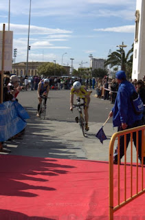 La bici, circuito completamente llano, muy revirado con cruces, giros y rotonda, y muchísimo viento. Sobretodo viento lateral, que hacia que algunos tramos fuesen muy peligrosos. Con tanto viento se hizo muy largo, mentalmente y físicamente ya que en vez de 90km fueron 93km. Al llegar a la transicción el cuenta marca 36km/h de media, así que mejor de lo esperado. Llego un poco preocupado por si me he pasado y a la hora de correr las piernas no van a responder.