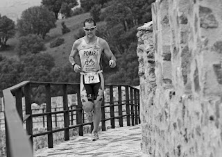 ¿Carrera dura? Nada imaginable con la realidad. El cambio de circuito presagiaba mas subida que unido al calor hizo que se convirtiese en una romería de gente sufriendo hasta la extenuación. Un sinfín de repechos, pasarelas y puentes, rampones sin sentido por el pueblo. Se veía mas gente andando que corriendo, y esto no es norml en un medio IronMan. Yo soy partidario de circuitos exigentes, tanto en bici como en carrera, pero que siempre te permitan correr y demostrar calidad. Sin embargo en ecotrimad-2012 marco la diferencia la capacidad de sufrimiento, el no pararse nunca, el olvidarse de los ritmos… y eso… aunque al final hice un puesto muy bueno… a mi no me gusta. Seguramente con un circuito más “normalito”, el puesto habría sido peor, pero hubiese disfrutado más.